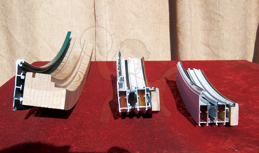 北京盛達(dá)偉業(yè)型材拉彎廠經(jīng)過工裝改良,工藝改進(jìn),加工出來的鋁包木型材整體平整,表面光滑,最小彎弧半徑R=460mm。