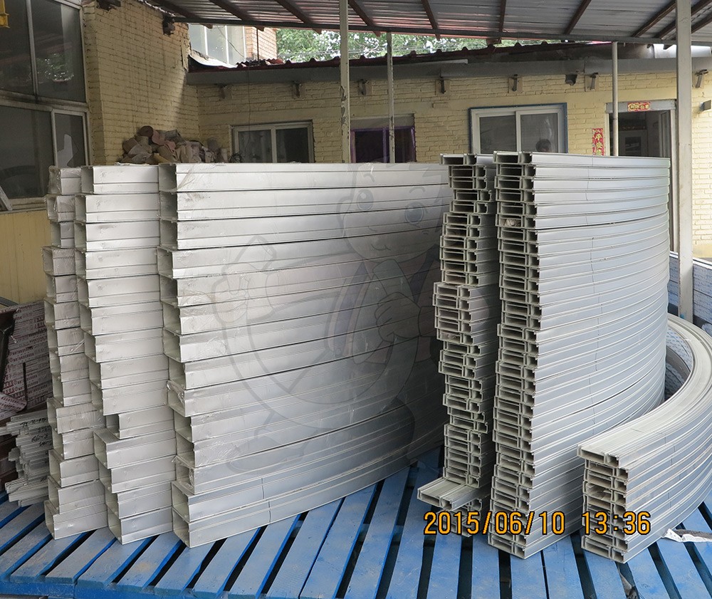 北京盛達偉業(yè)型材拉彎廠經(jīng)過數(shù)十次的工裝設計及模具改造,成功將單元體幕墻型材拉彎成型,而且將拉彎半徑縮小到2米以內。
