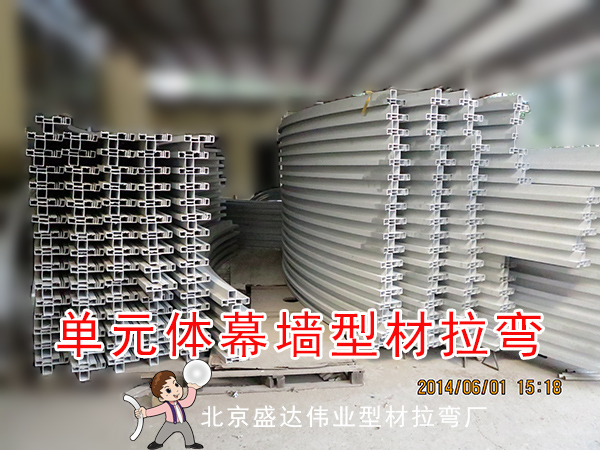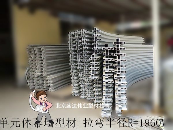 北京盛達(dá)偉業(yè)型材拉彎廠經(jīng)過(guò)數(shù)十次的工裝設(shè)計(jì)及模具改造,成功將單元體幕墻型材拉彎成型,而且將拉彎半徑縮小到2米以?xún)?nèi)。