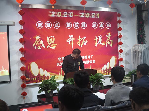 首先是北京盛達(dá)偉業(yè)型材拉彎廠總經(jīng)理王總帶領(lǐng)同事們逆勢奮進(jìn)找機(jī)會,齊心協(xié)力。王總的發(fā)言激勵了在座每一位領(lǐng)導(dǎo)和員工的心,相信2021,北京拉彎廠定能再創(chuàng)輝煌!